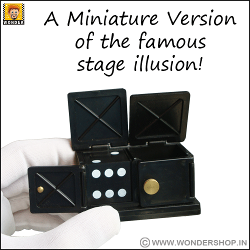 चमत्कारी पासा बॉक्सबक्से में रखा पासा डिब्बे बदलता है और अचानक आपकी जेब में गायब हो जाता है! View Infoकैबिनेट (बॉक्स) के एक डिब्बे में एक पासा रखा जाता है और बॉक्स बंद कर दिया जाता है। जब खोला जाता है, तो पासा डिब्बे बदल...